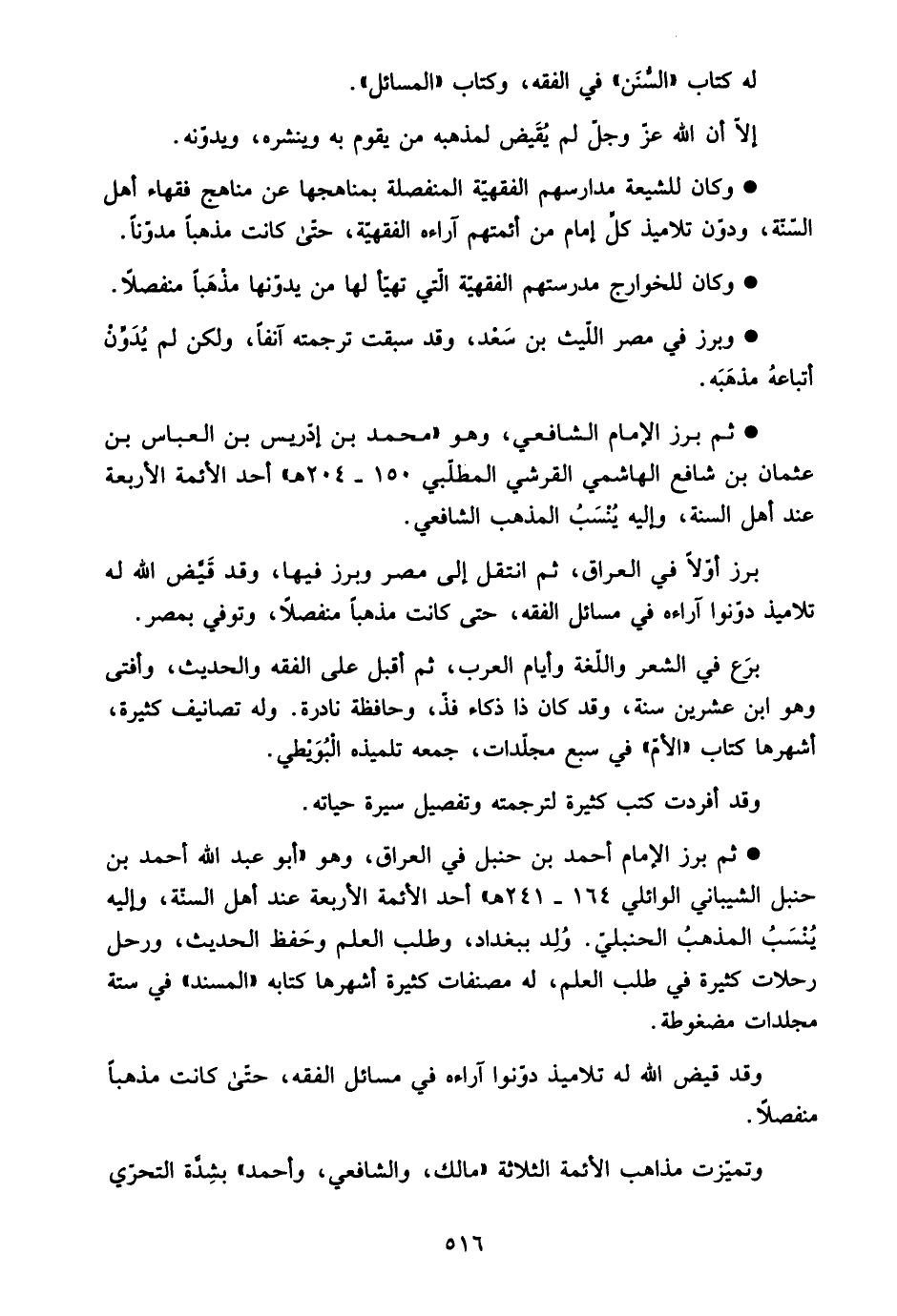 - ثم برز الإمام الشافعي، وهو "محمد بن إدريس بن العباس بن عثمان بن شافع الهاشمي القرشي المطلبي 150-204هـ" أحد الأئمة الأربعة عند أهل السنة، وإليه ينسب المذهب الشافعي.