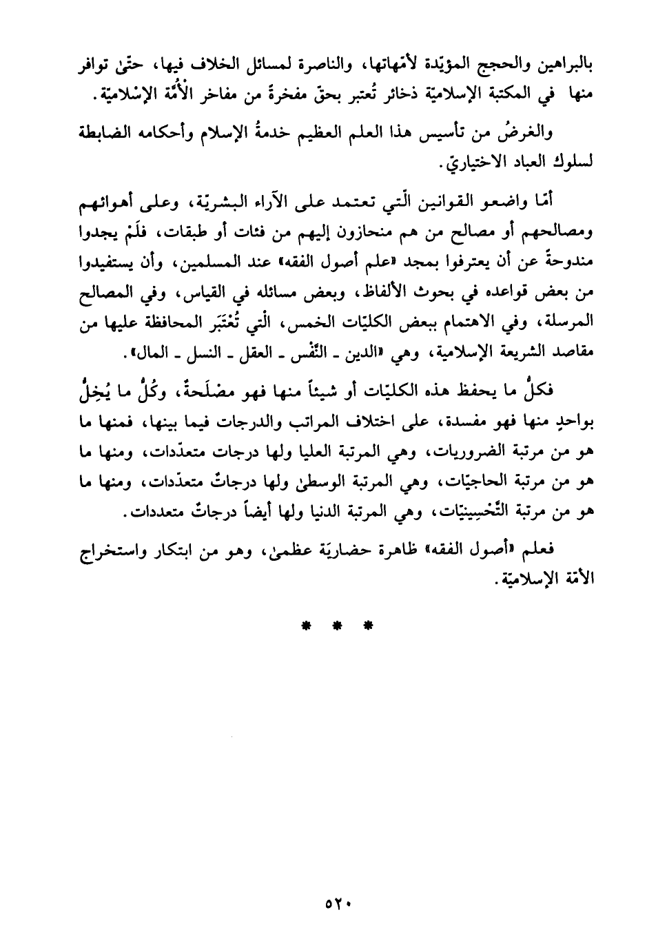 أما واضعو القوانين التي تعتمد على الآراء البشرية, وعلى أهوائهم ومصالحهم أو مصالح من هم منحازون إليهم من فئات أو طبقات، فلم يجدوا مندوحة عن أن يعترفوا بمجد "علم أصول الفقه" عند المسلمين، وأن يستفيدوا من بعض قواعده في بحوث الألفاظ، وبعض مسائله في القياس، وفي المصالح المرسلة، وفي الاهتمام ببعض الكليات الخمس، التي تعتبر المحافظة عليها من مقاصد الشريعة الإسلامية، وهي "الدين، النفس، العقل، النسل، المال".