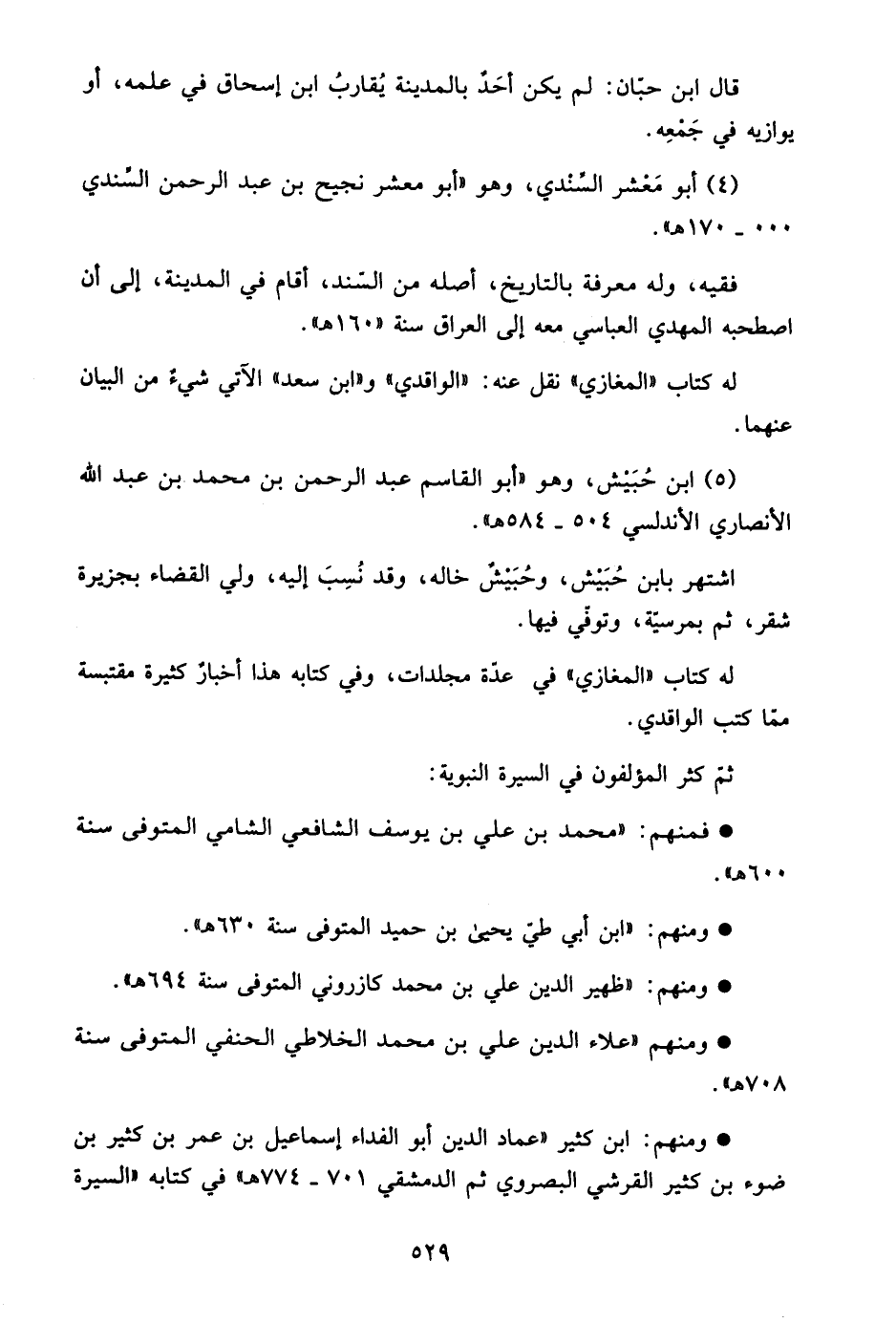 - ومنهم: ابن كثير "عماد الدين أبو الفداء إسماعيل بن عمر بن كثير بن ضوء بن كثير القرشي البصروي ثم الدمشقي 701-774هـ" في كتابه "السيرة