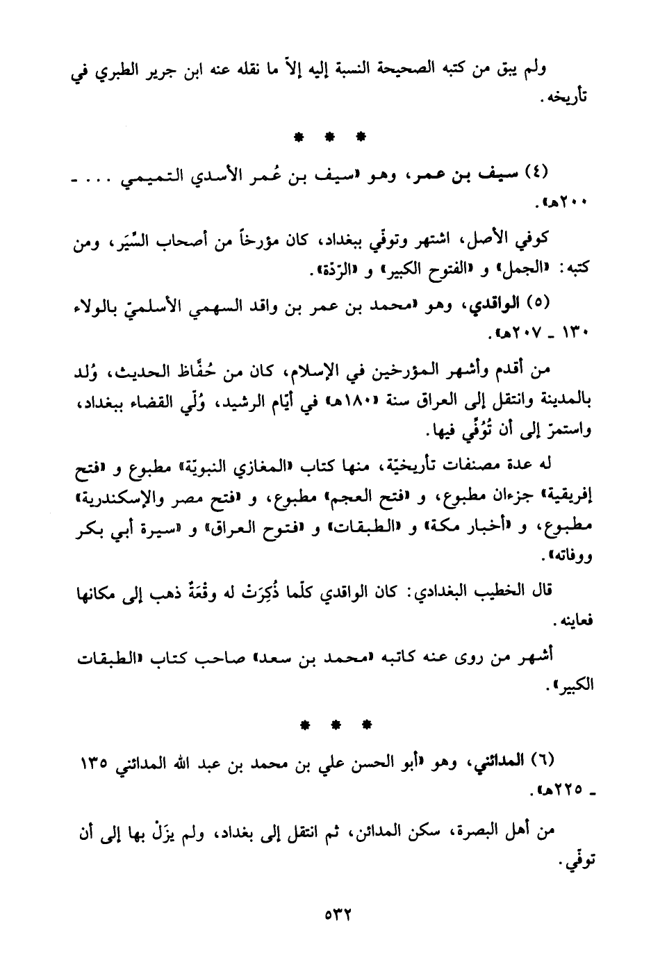 5- الواقدي، وهو "محمد بن عمر بن واقد السهمي الأسلمي بالولاء 130-207هـ".