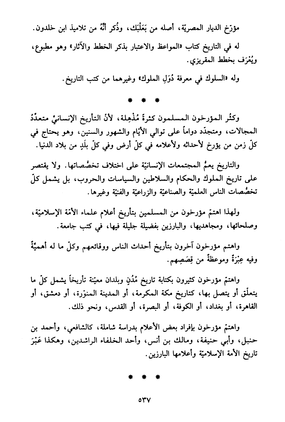وله "السلوك في معرفة دول الملوك" وغيرهما من كتب التاريخ.
