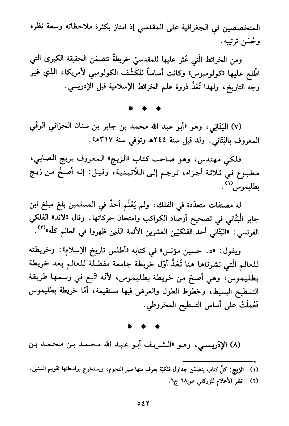 7- البتاني، وهو "أبو عبد الله محمد بن جابر بن سنان الحراني الرقي المعروف بالبتاني. ولد قبل سنة 244هـ وتوفي سنة 317هـ".