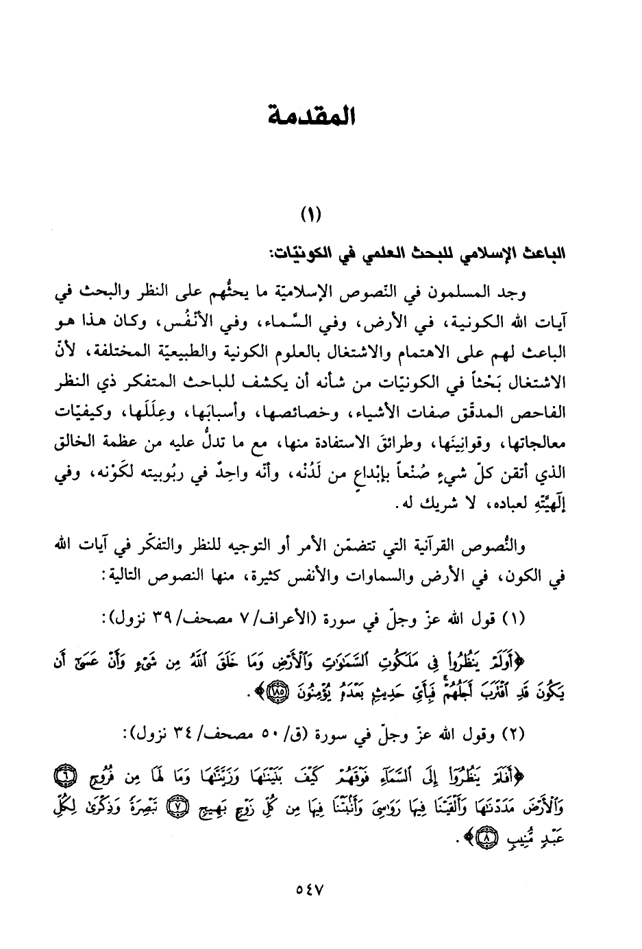 1- الباعث الإسلامي للبحث العلمي في الكونيات: