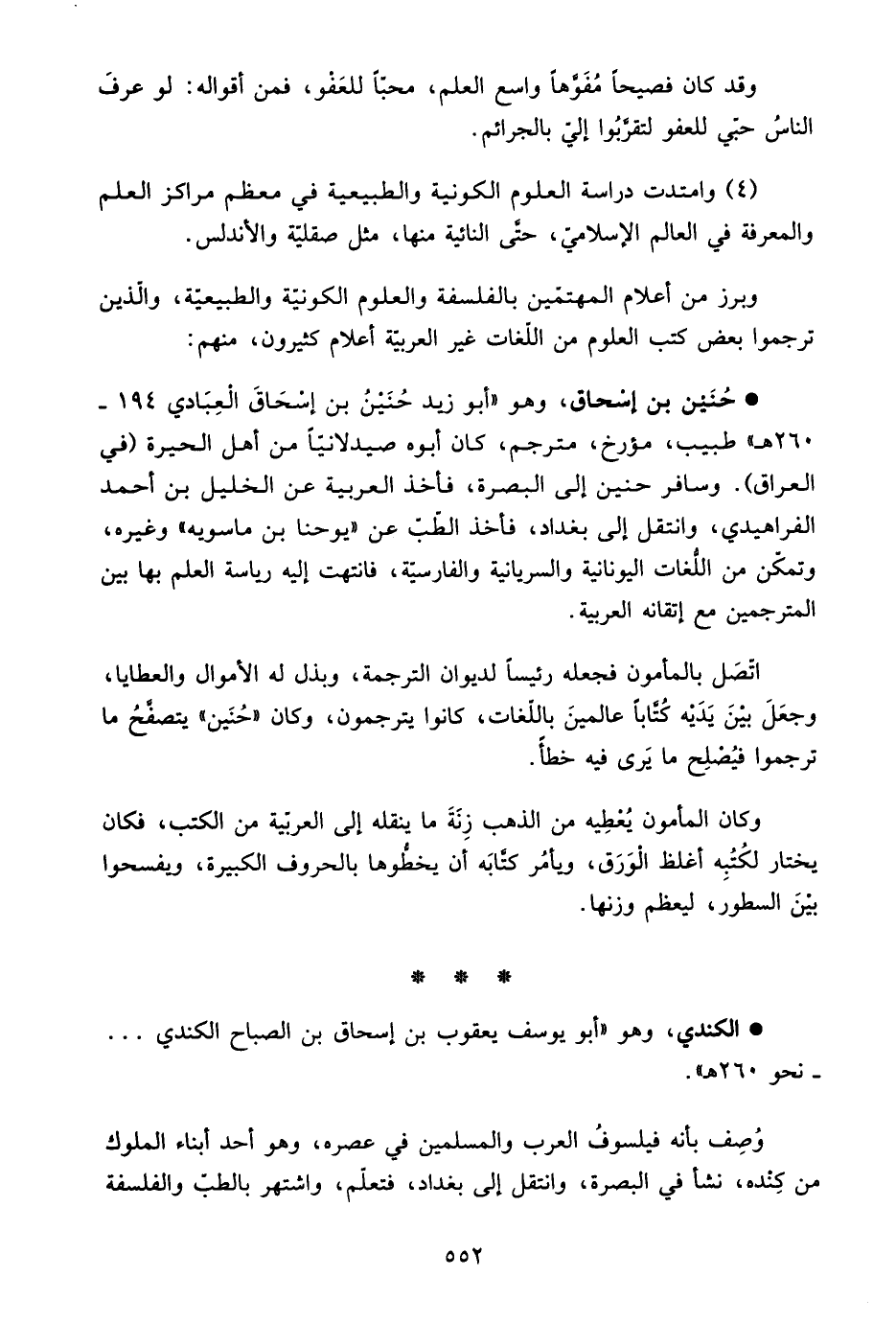 - الكندي، وهو "أبو يوسف يعقوب بن إسحاق بن الصباح الكندي 000-نحو 260هـ".