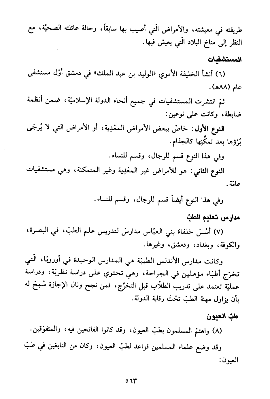 6- أنشأ الخليفة الأموي "الوليد بن عبد الملك" في دمشق أول مستشفى عام "88هـ".