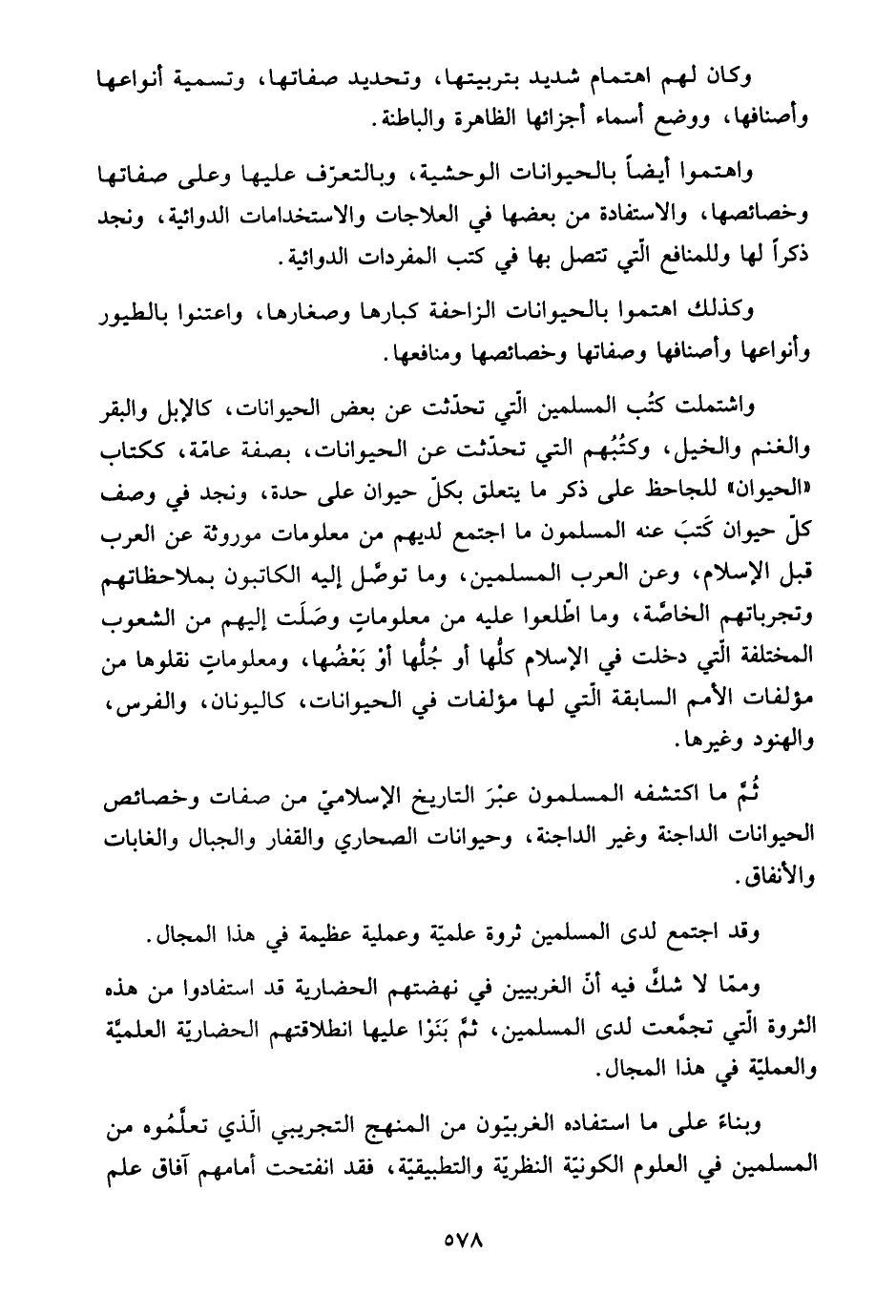 وكذلك اهتموا بالحيوانات الزاحفة كبارها وصغارها، واعتنوا بالطيور وأنواعها وأصنافها وصفاتها وخصائصها ومنافعها.