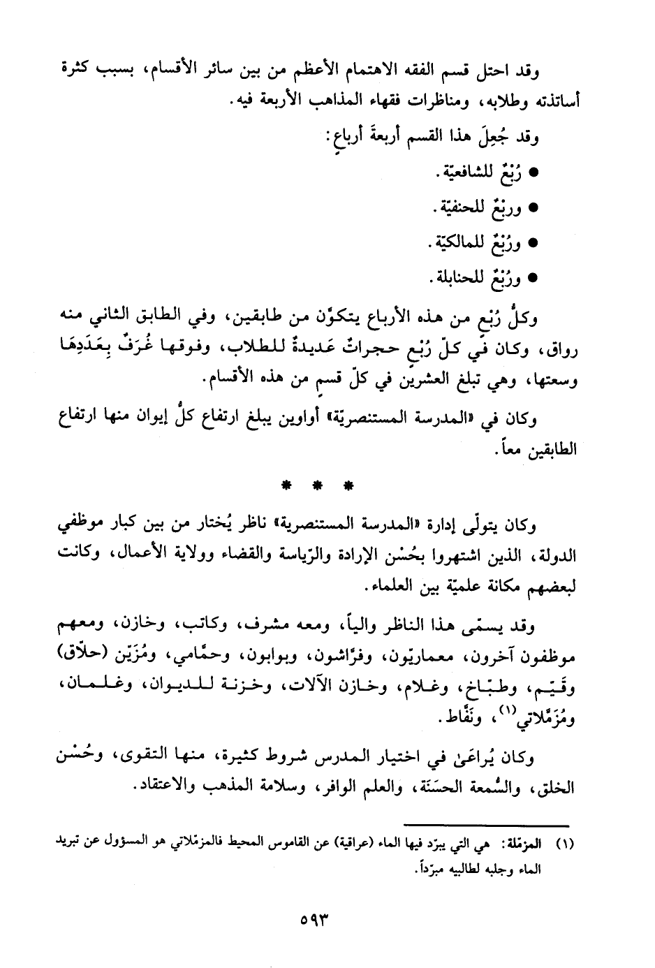 1 المزملة: هي التي يبرد فيها الماء "عراقية" عن القاموس المحيط فالمزملاني هو المسئول عن تبريد الماء وجلبه لطالبيه مبردًا.