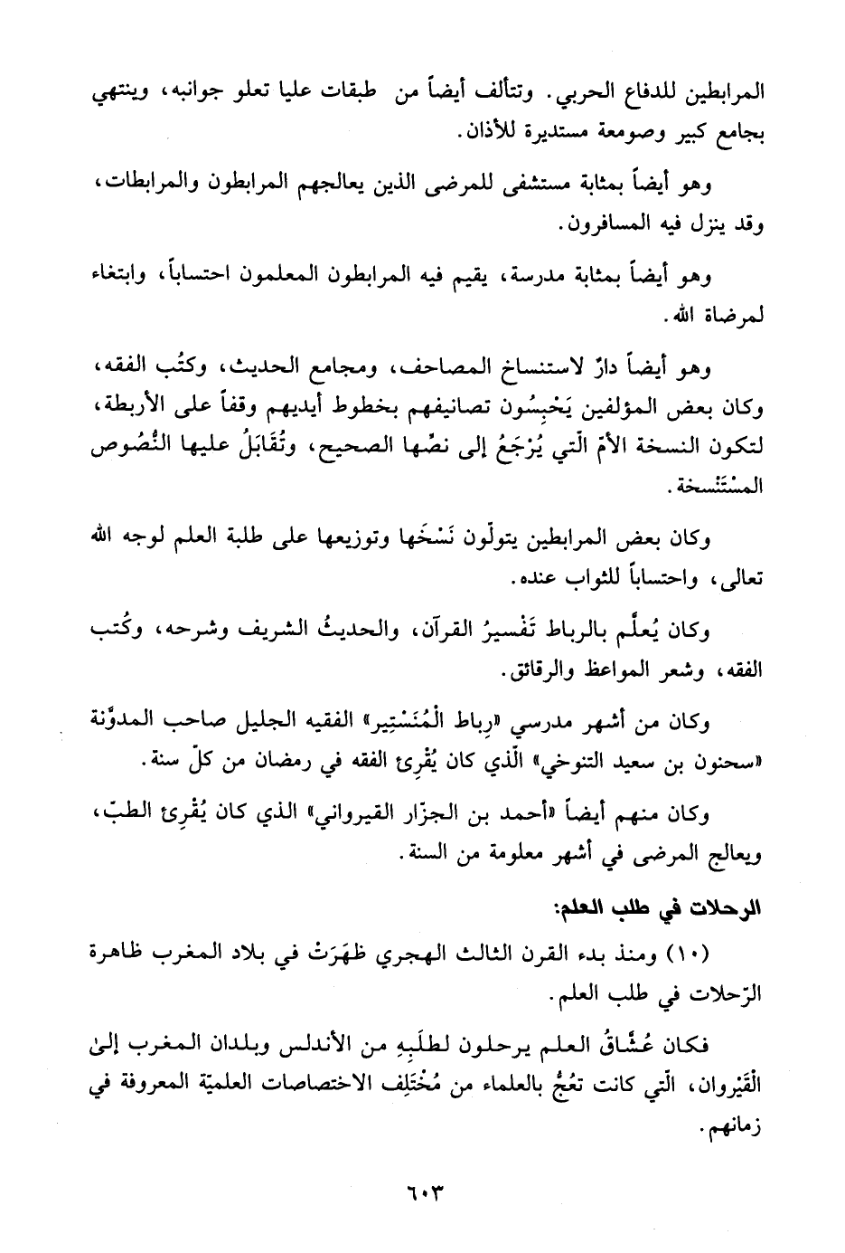 10- ومنذ بدء القرن الثالث الهجري ظهرت في بلاد المغرب ظاهرة الرحلات في طلب العلم.