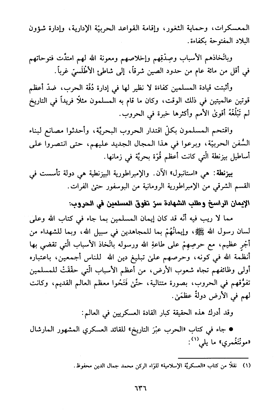 1 نقلًا من كتاب "العسكرية الإسلامية" للواء الركن محمد جمال الدين محفوظ.