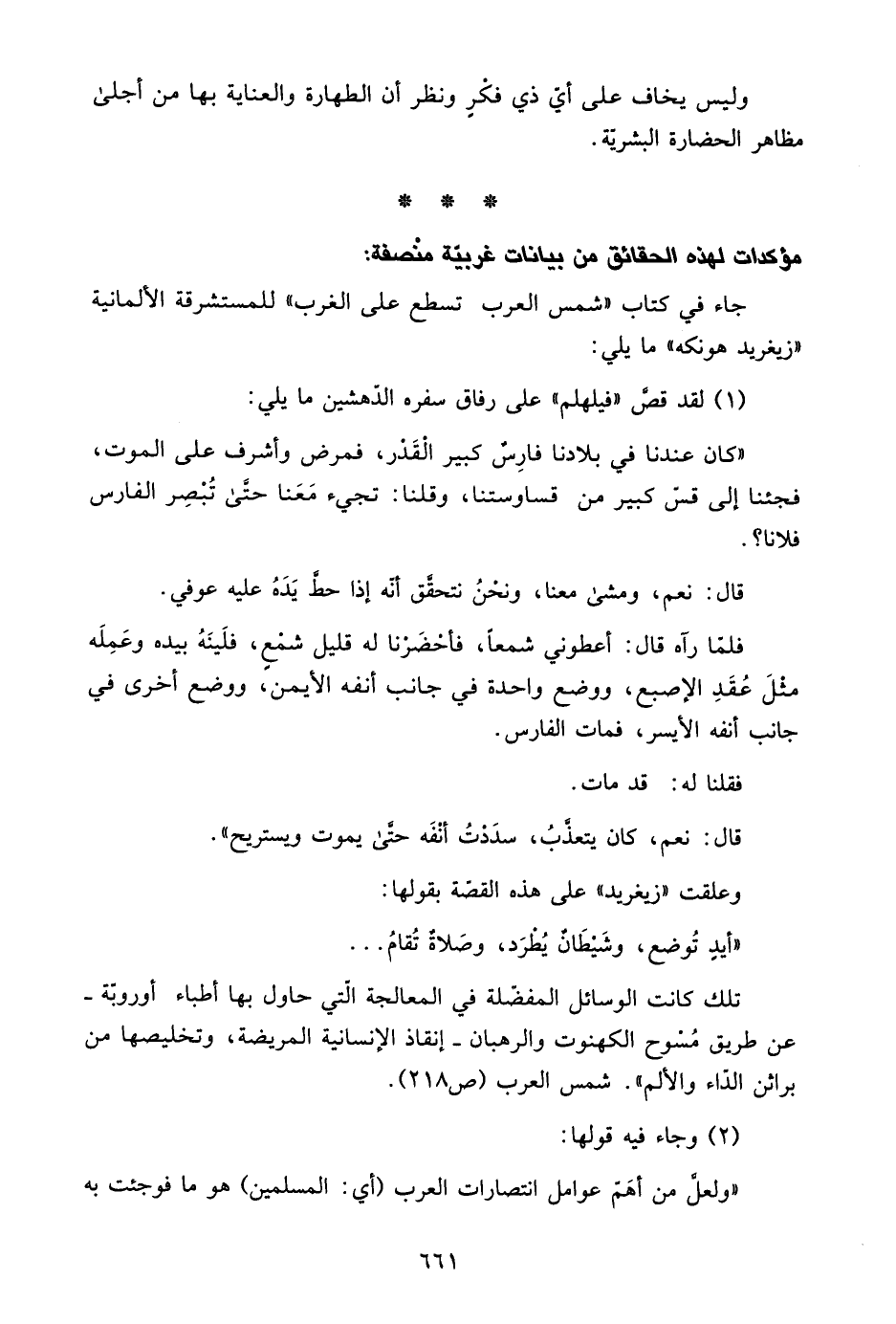 جاء في كتاب "شمس العرب تسطع على الغرب" للمستشرقة الألمانية "زيغريد هونكه" ما يلي:
