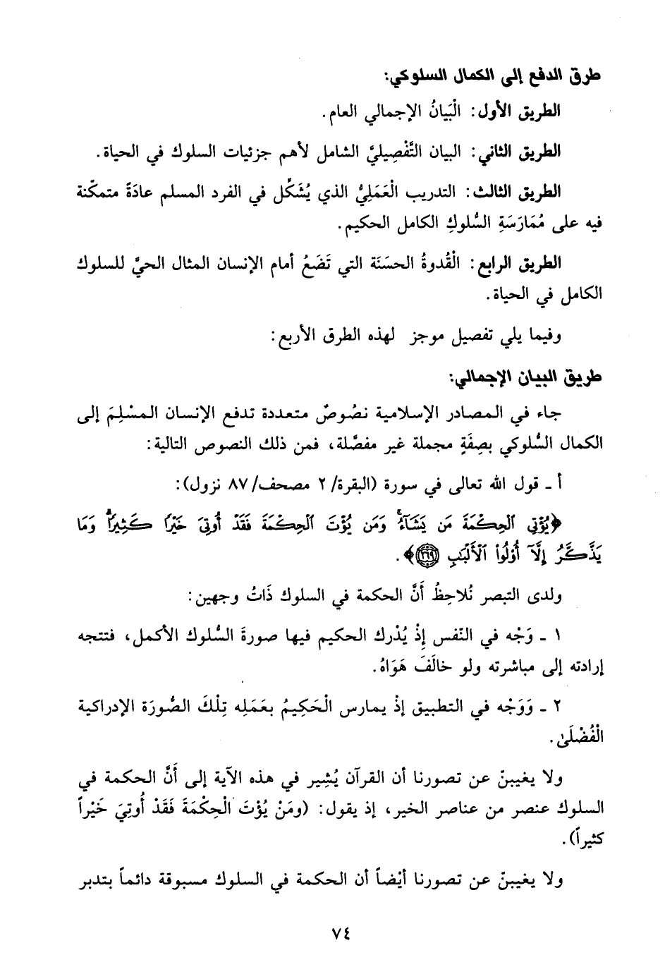 الطريق الثاني: البيان التفصيلي الشامل لأهم جزئيات السلوك في الحياة.