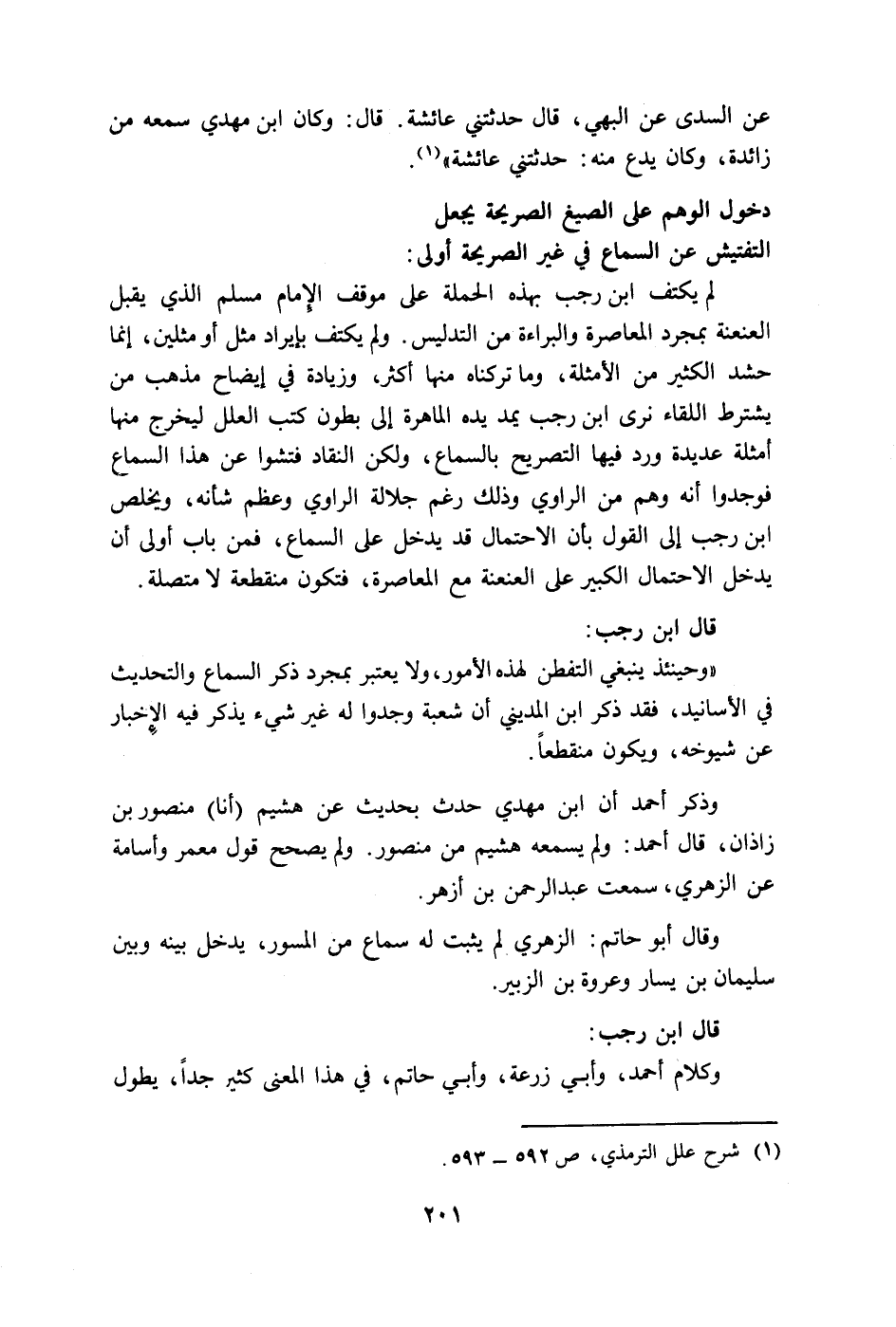 المبحث الثاني في العنعنة عند ابن رجب مقارنا بآراء غيره من العلماء