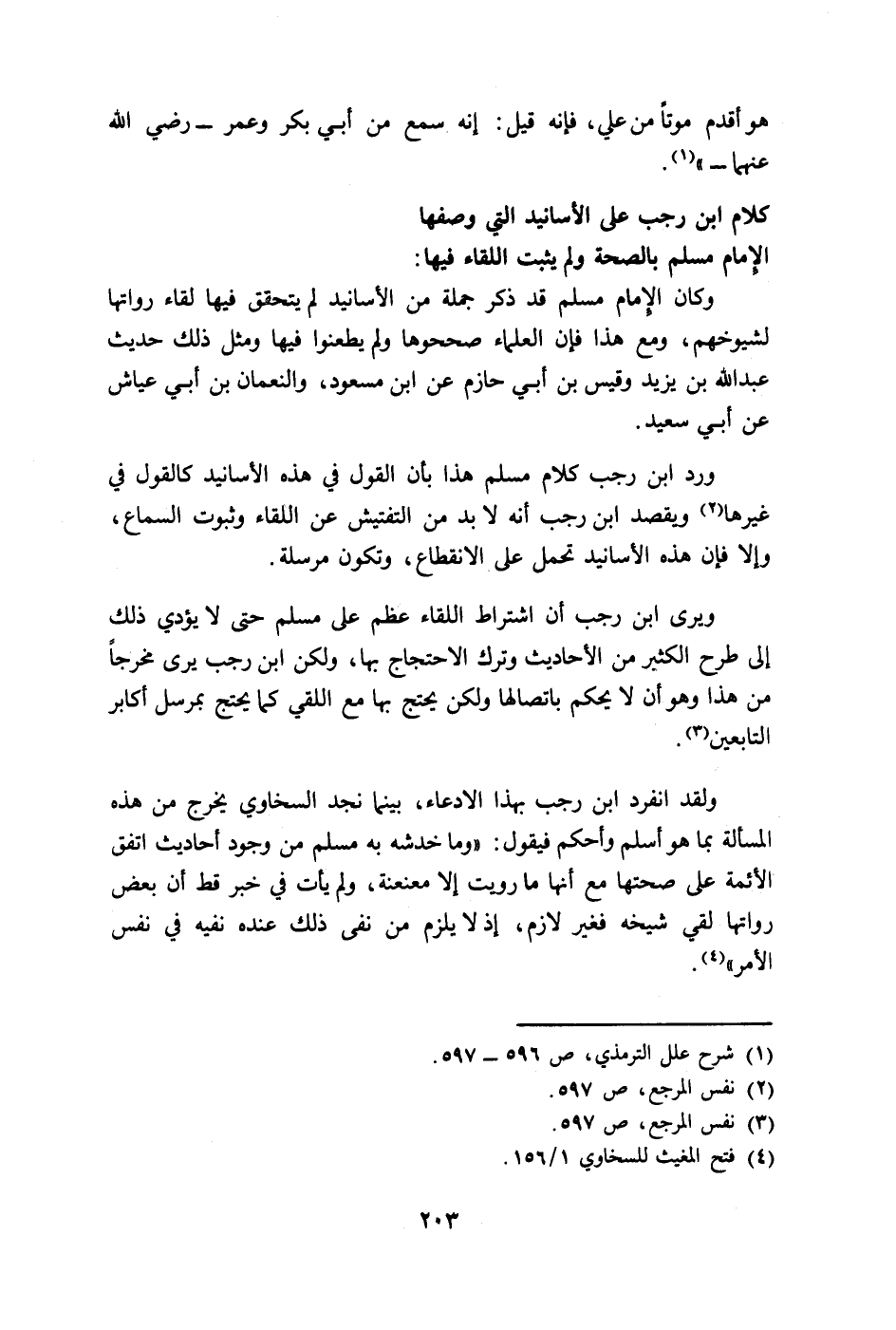 1- إن التفتيش عن سماع كل راو عمن روى لم يعرف عن السلف فقال مسلم فإن ادعى قول أحد من علماء السلف طولب به ولن يجد هو ولا غيره إلى إيجاده سبيلا@