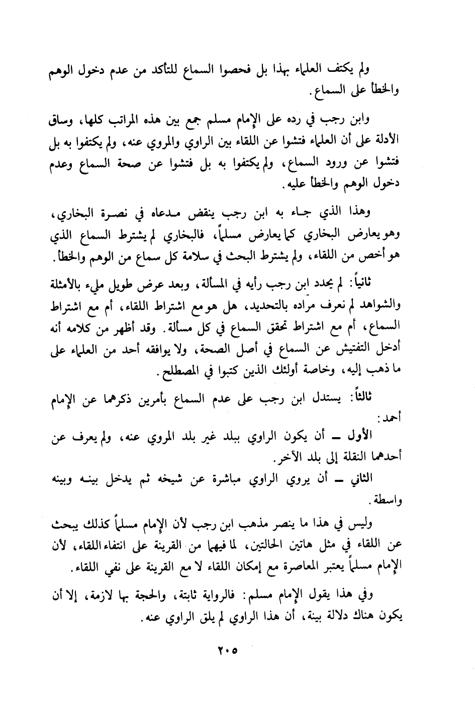ابن رجب يعارض مسلما وينتصر للرأي المنسوب للبخاري