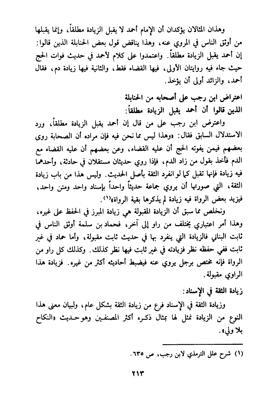 المبحث الثالث في زيادة الثقة عند ابن رجب مقارنا بآراء غيره من العلماء