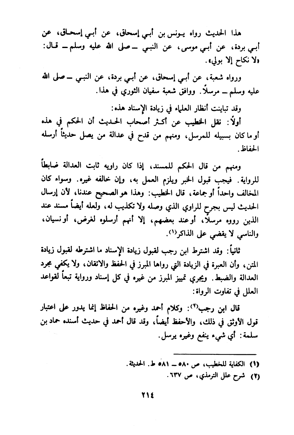 مثالا بين فيه صورة الزيادة كما تضمن إجمالا سريعا لكلام العلماء فيها قال الترمذي