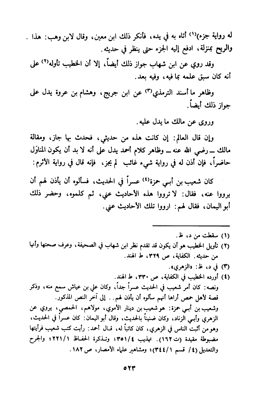وقال محمد بن كثير : (( سألت الأوزاعي عن الرجل يقرأ على الرجل الحديث يقول : (( ثنا )) ؟ قال : لا ، يقول كما صنع يقول : (( قرأت )) .@