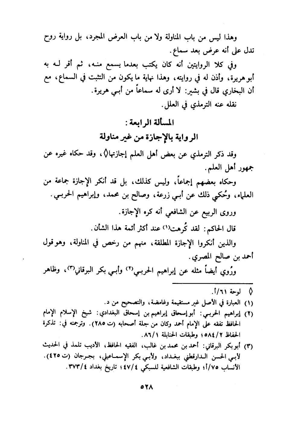 وهذا الذي ذكره الخطيب صحيح ، وقد اعتمد أحمد في ذلك على حكاية حكاها له ابن معين عن ابن وهب أنه طلب من سفيان ابن عيينة أن يُجيز @