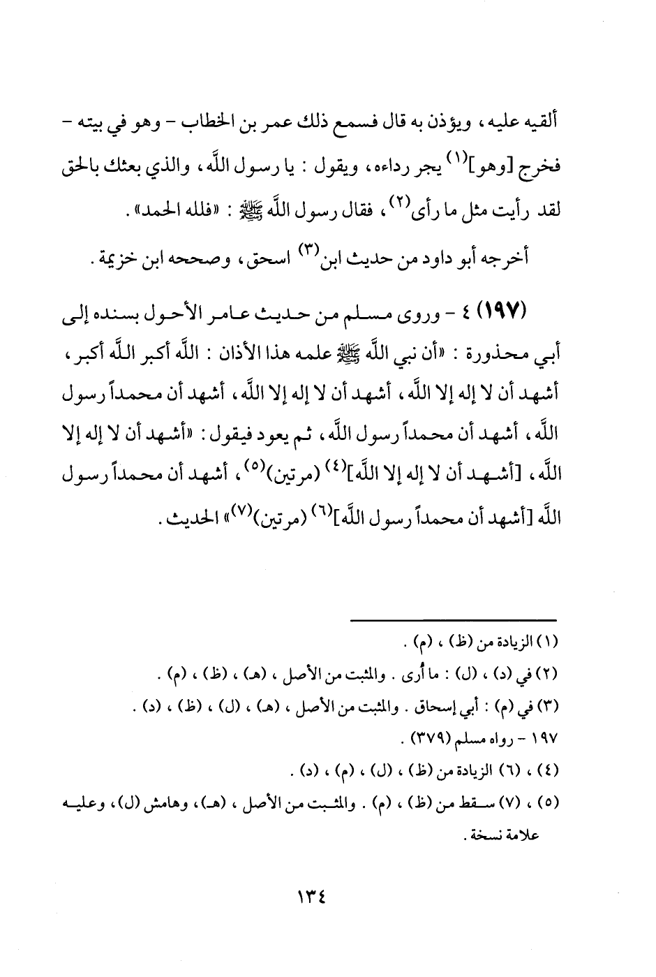 (197) وَرَوَى مُسلم من حَدِيث عَامر الْأَحول بِسَنَدِهِ إِلَى أبي مَحْذُورَة: " أَن نَبِي الله [صَلَّى اللَّهُ عَلَيْهِ وَسَلَّم َ] علمه هَذَا الْأَذَان: الله أكبر الله أكبر، أشهد أَن لَا إِلَه إِلَّا الله، أشهد أَن لَا إِلَه إِلَّا الله، أشهد أَن مُحَمَّدًا رَسُول الله، أشهد أَن مُحَمَّدًا رَسُول الله، ثمَّ يعود فَيَقُول: " أشهد أَن لَا إِلَه إِلَّا الله، [أشهد أَن لَا إِلَه إِلَّا الله] (مرَّتَيْنِ) ، أشهد أَن مُحَمَّدًا رَسُول الله [أشهد أَن مُحَمَّدًا رَسُول الله] (مرَّتَيْنِ) " الحَدِيث.