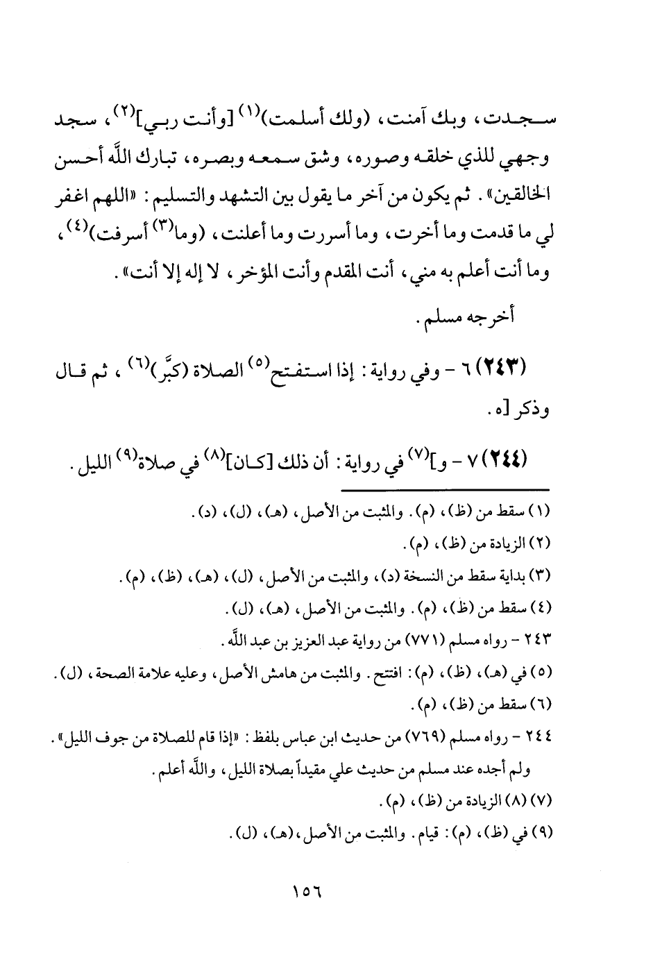 (244) وفِي رِوَايَة: أَن ذَلِك [كَانَ] فِي صَلَاة اللَّيْل.