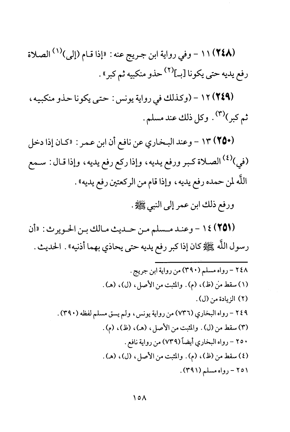 (251) وَعند مُسلم من حَدِيث مَالك بن الْحُوَيْرِث: " أَن رَسُول الله [صَلَّى اللَّهُ عَلَيْهِ وَسَلَّم َ] كَانَ إِذا كبر رفع يَدَيْهِ حَتَّى يُحَاذِي بهما أُذُنَيْهِ ". الحَدِيث.