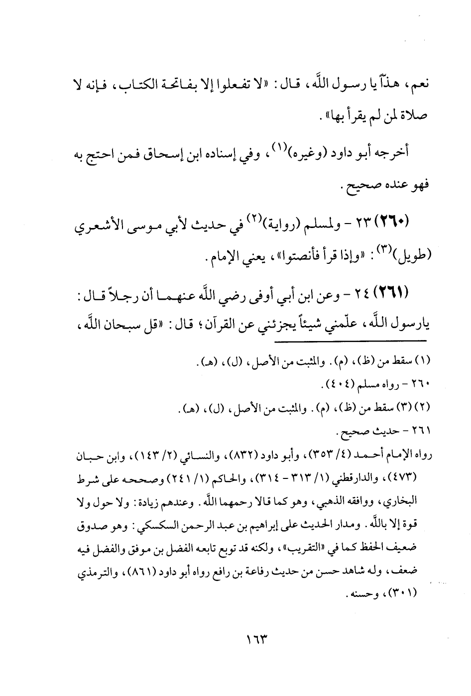 (260) وَلمُسلم (رِوَايَة) فِي حَدِيث لأبي مُوسَى الْأَشْعَرِيّ (طَوِيل) : " وَإِذا قَرَأَ فأنصتوا "، يَعْنِي الإِمَام.