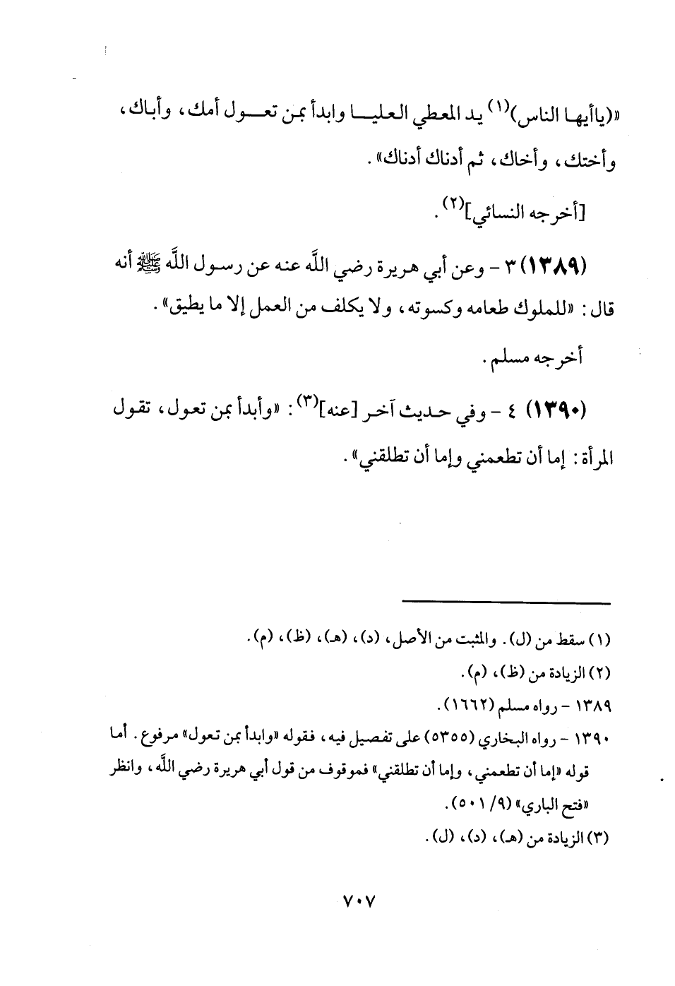 (1389) وَعَن أبي هُرَيْرَة رَضِيَ اللَّهُ عَنْه عَن رَسُول الله [صَلَّى اللَّهُ عَلَيْهِ وَسَلَّم َ] أَنه قَالَ: للملوك طَعَامه وَكسوته، وَلَا يُكَلف من الْعَمَل إِلَّا مَا يُطيق ". أخرجه مُسلم.