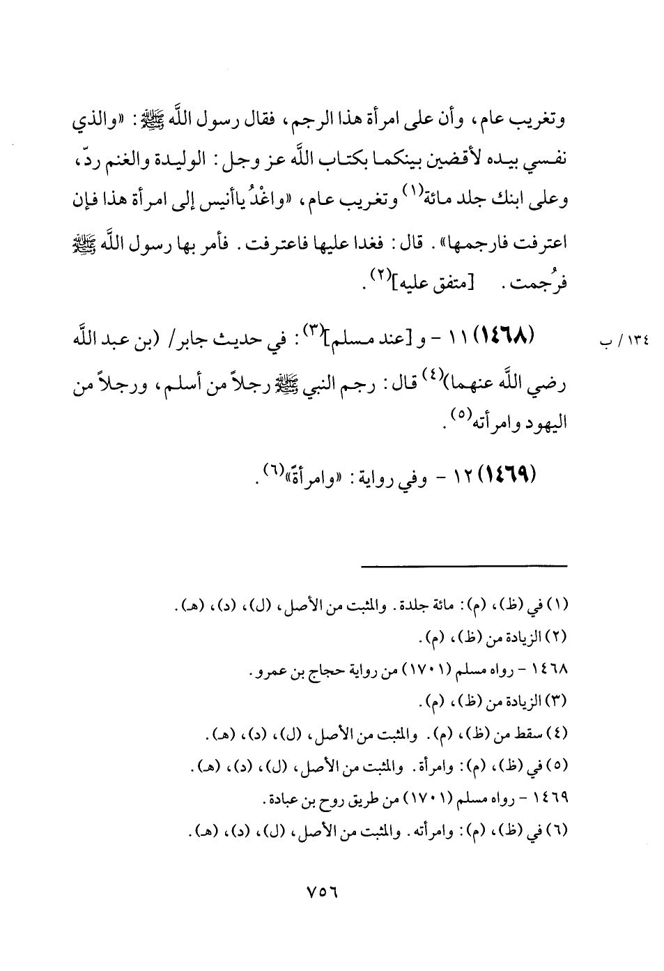 (1468) و [عِنْد مُسلم] : فِي حَدِيث جَابر / (بن عبد الله رَضِيَ اللَّهُ عَنْهما) قَالَ: رجم النَّبِي [صَلَّى اللَّهُ عَلَيْهِ وَسَلَّم َ] رجلا من أسلم، ورجلاً من الْيَهُود وَامْرَأَته.