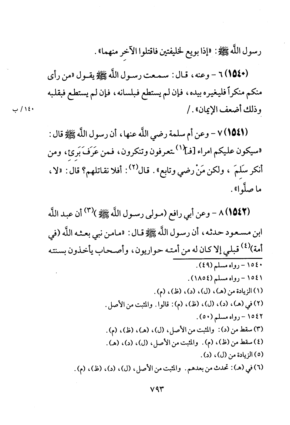 (1540) وَعنهُ، قَالَ: سَمِعت رَسُول الله [صَلَّى اللَّهُ عَلَيْهِ وَسَلَّم َ] يَقُول " من رَأَى مِنْكُم مُنْكرا فليغيره بِيَدِهِ، فَإِن لم يسْتَطع فبلسانه، فَإِن لم يسْتَطع فبقلبه وَذَلِكَ أَضْعَف الْإِيمَان ". /