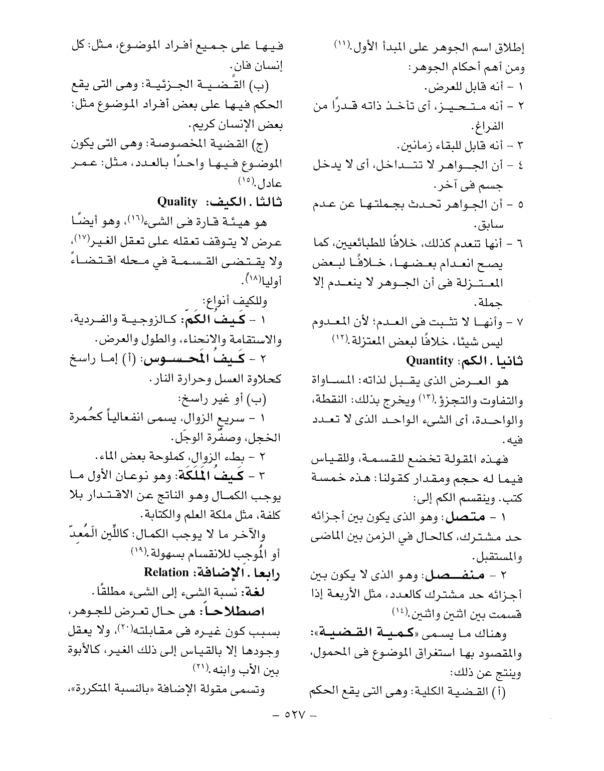 ثانيا: وينقسم باعتبار الطرفين: إلى قصر صفة على موصوف، وقصر موصوف على صفة، والصفة مطلق المعنى القائم بالغير، وليس الصفة النحوية. والموصوف وما قام بنفسه، سواء كان ذاتا أو معنى موصوفا.