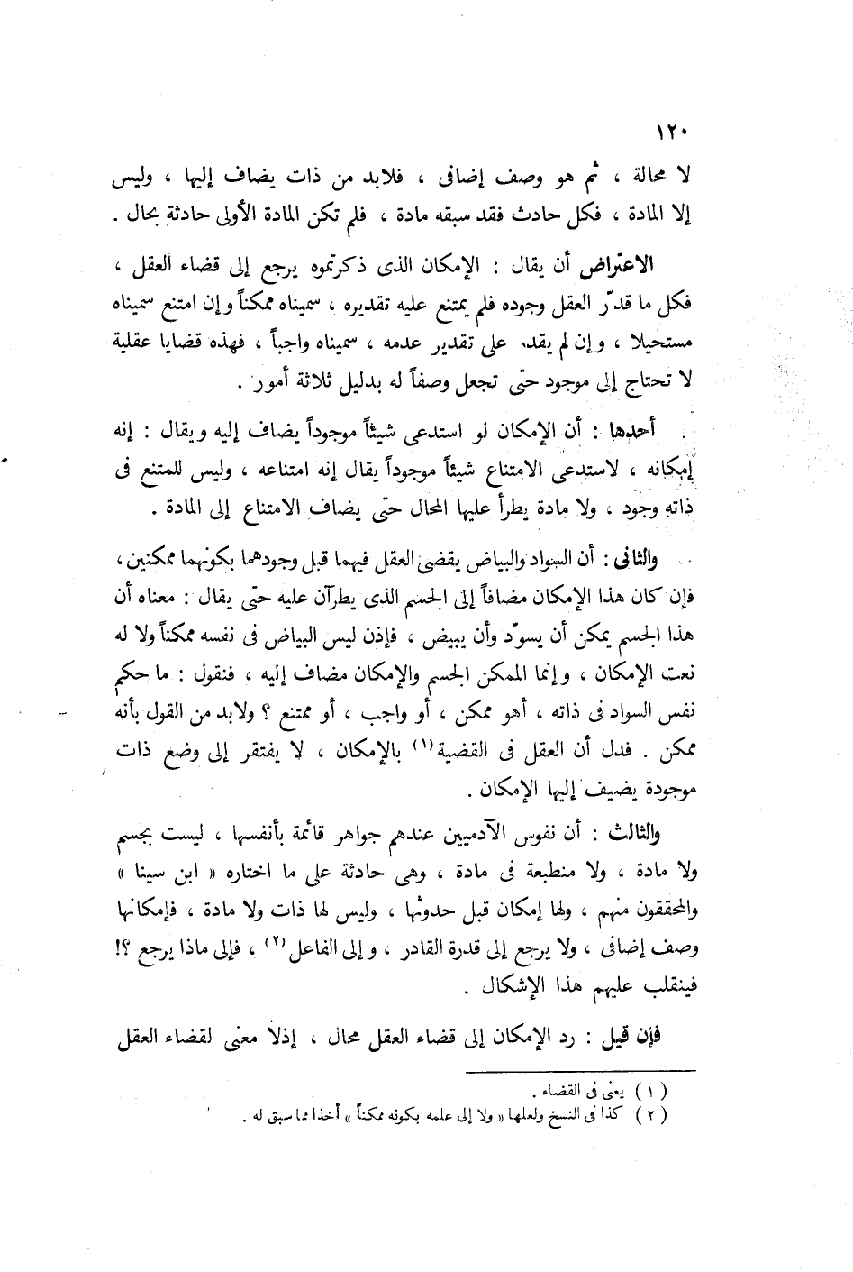 اعتراض الإمكان هو قضاء العقل وهو يستدعي شيئاً موجوداً ...