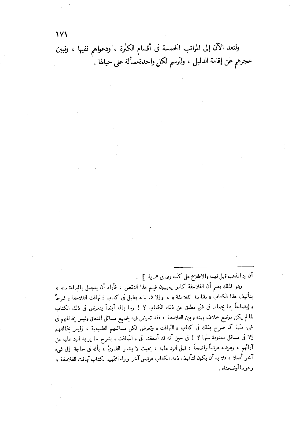 ولنعد إلى المراتب الخمسة في أقسام الكثرة ودعواهم نفيها، ولنبين عجزهم عن إقامة الدليل، ولنرسم كل واحد مسألة على حيالها.