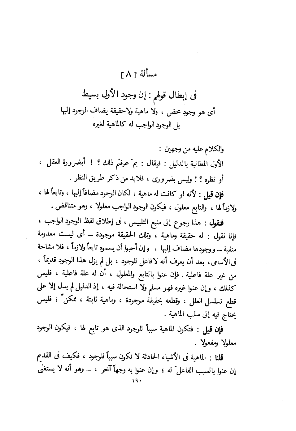مسألة في إبطال قولهم إن وجود الأول بسيط