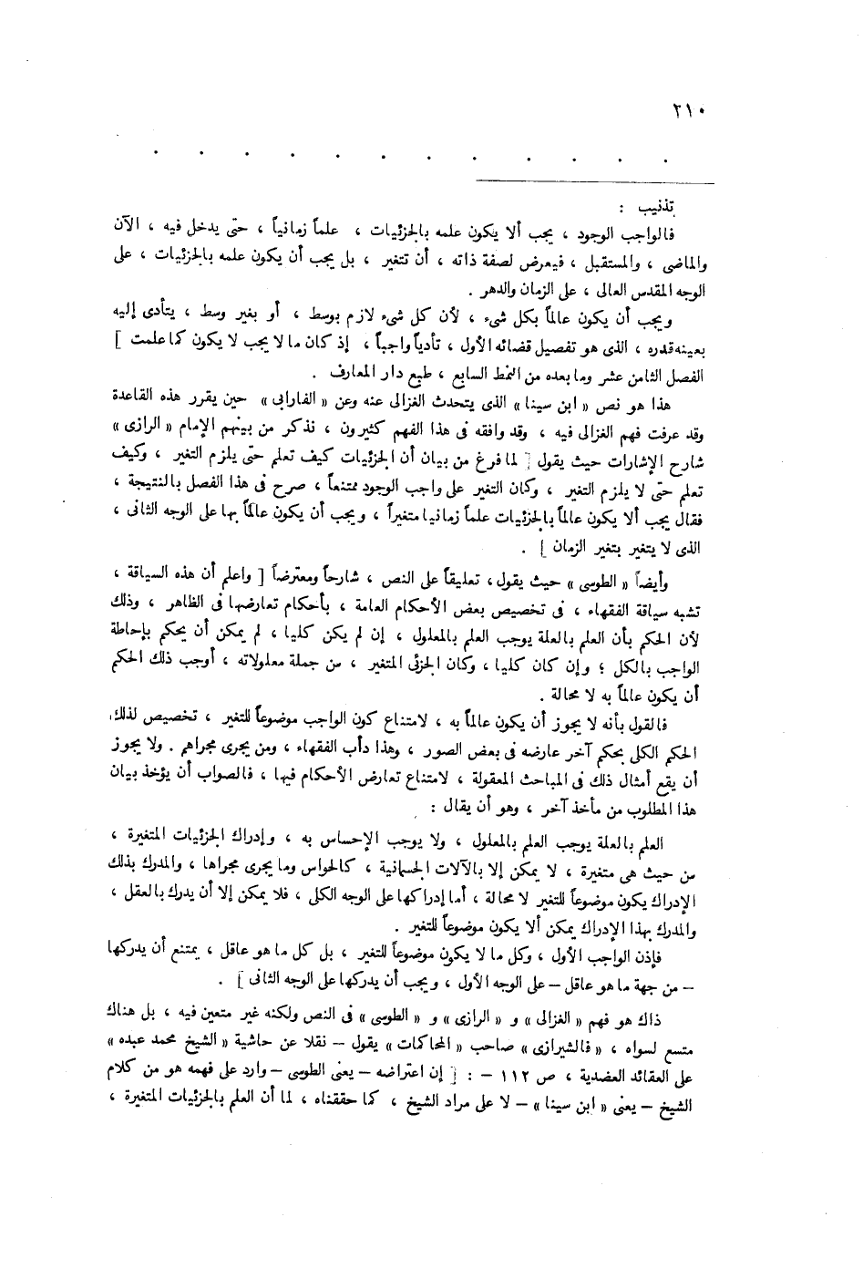 أن زيد مثلاً لو أطاع الله أو عصاه لم يكن الله عالماً بما يتجدد من أحواله لأنه لا يعرف زيداً بعينه فإنه شخص وأفعاله حادثة بعد أن لم تكن، وإذا لم يعرف الشخص لم يعرف أحواله وأفعاله بل لا يعلم كفر زيد ولا إسلامه وإنما يعلم كفر الإنسان وإسلامه مطلقاً كلياً لا مخصوصاً بالأشخاص، بل يلزم أن يقال: تحدى محمد صلى الله عليه وسلم بالنبوة وهو لم يعرف في تلك الحالة أنه تحدى بها، وكذلك الحال مع كل نبي معين وإنه إنما يعلم أن من الناس من يتحدى بالنبوة وأن صفة أولئك كذى وكذى فأما النبي المعين بشخصه فلا يعرفه فإن ذلك يعرف بالحس والأحوال الصادرة