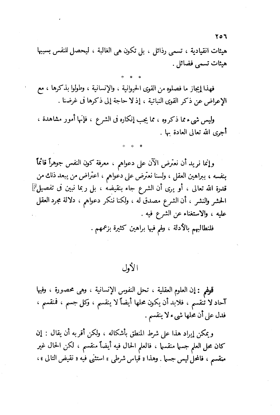 وإنما نريد أن نعترض الآن على دعواهم معرفة كون النفس جوهراً قائماً بنفسه ببراهين العقل. ولسنا نعترض اعتراض من يبعد ذلك من قدرة الله أو يرى أن الشرع جاء بنقيضه بل ربما نبين في تفصيل الحشر والنشر أن الشرع مصدق له، ولكنا ننكر دعواهم دلالة مجرد العقل عليه والاستغناء عن الشرع فيه.