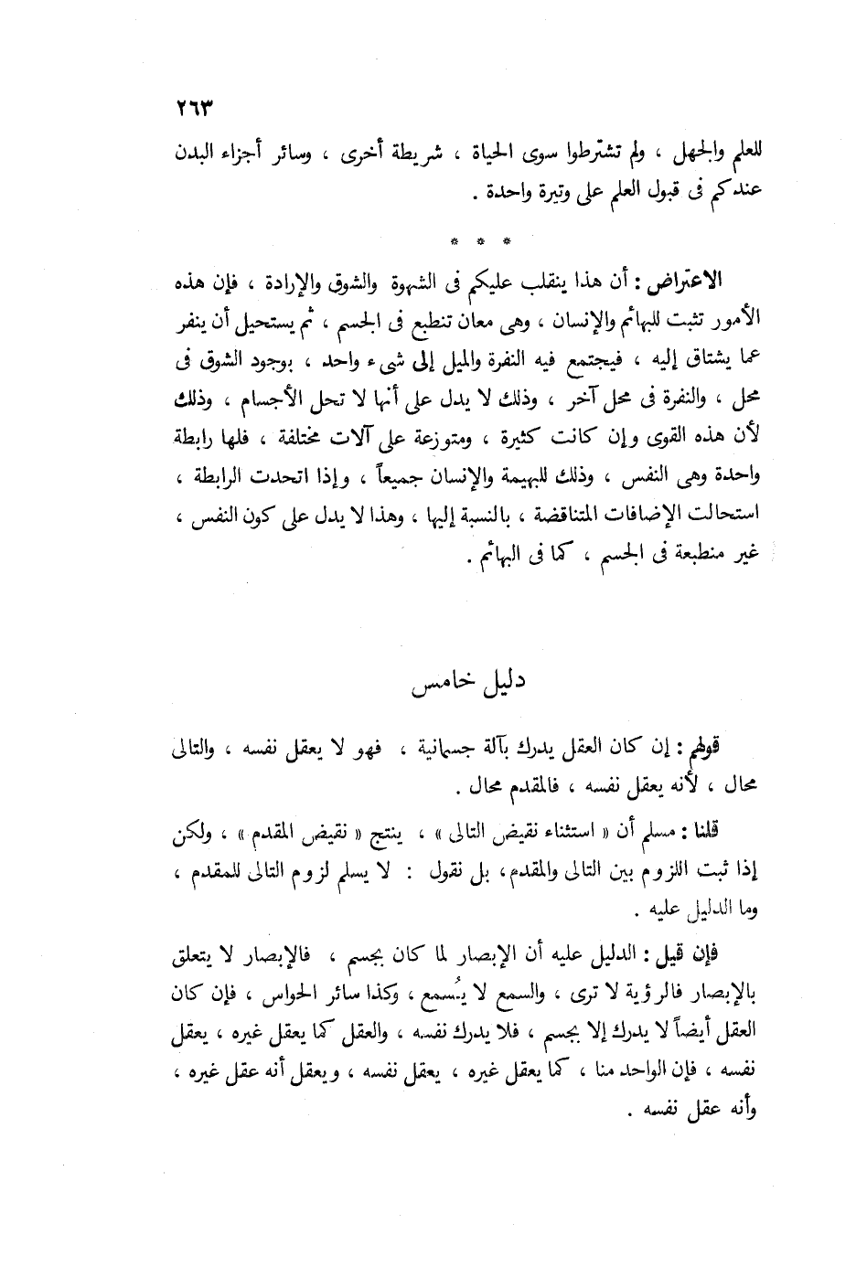 دليلهم الخامس لولا ذلك لما عقل العقل نفسه
