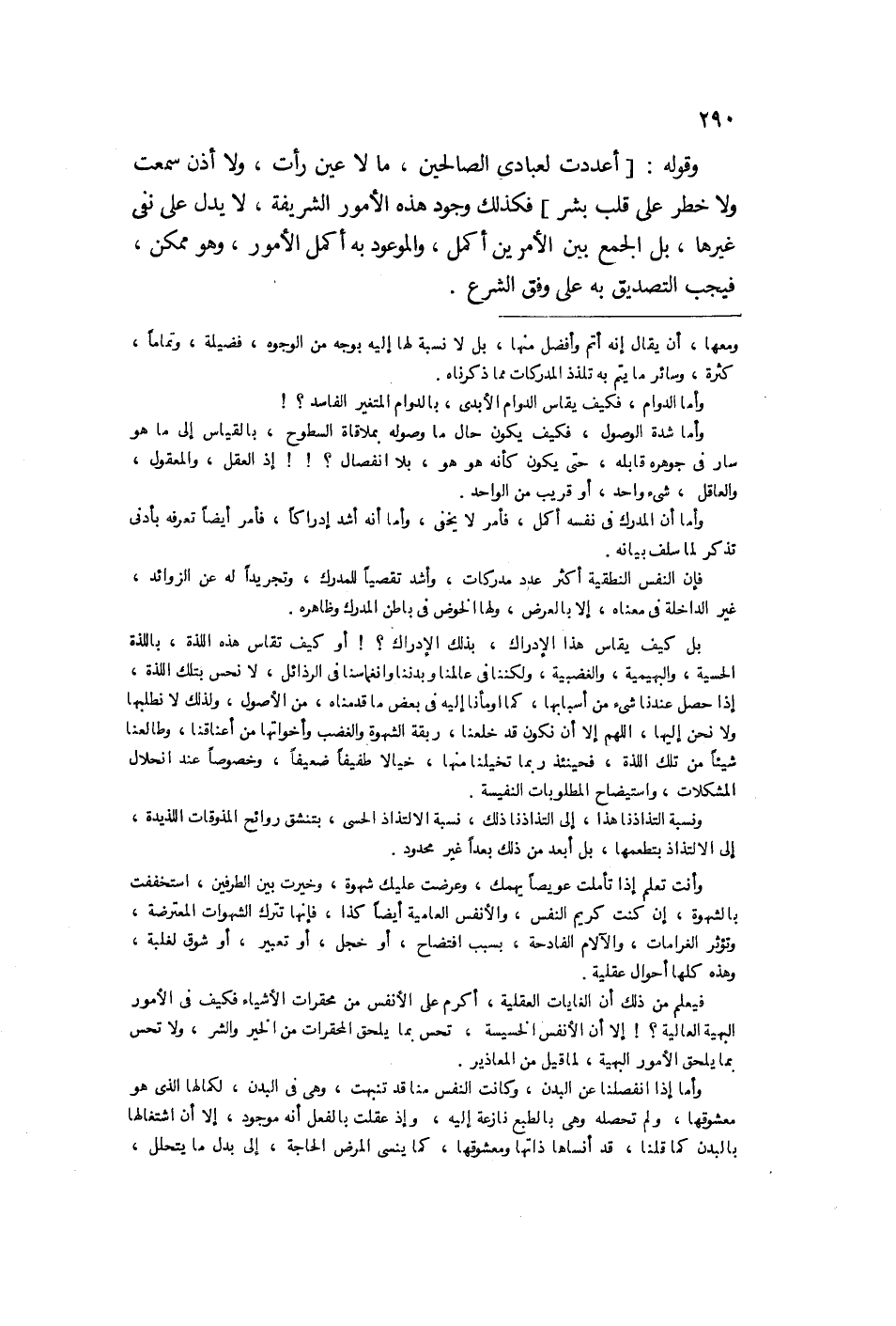 وقوله: أعددت لعبادي الصالحين ما لا عين رأت فكذلك وجود تلك الأمور الشريفة لا يدل على نفي غيرها بل الجمع بين الأمرين أكمل والموعود أكمل الأمور وهو ممكن فيجب التصديق به على وفق الشرع.