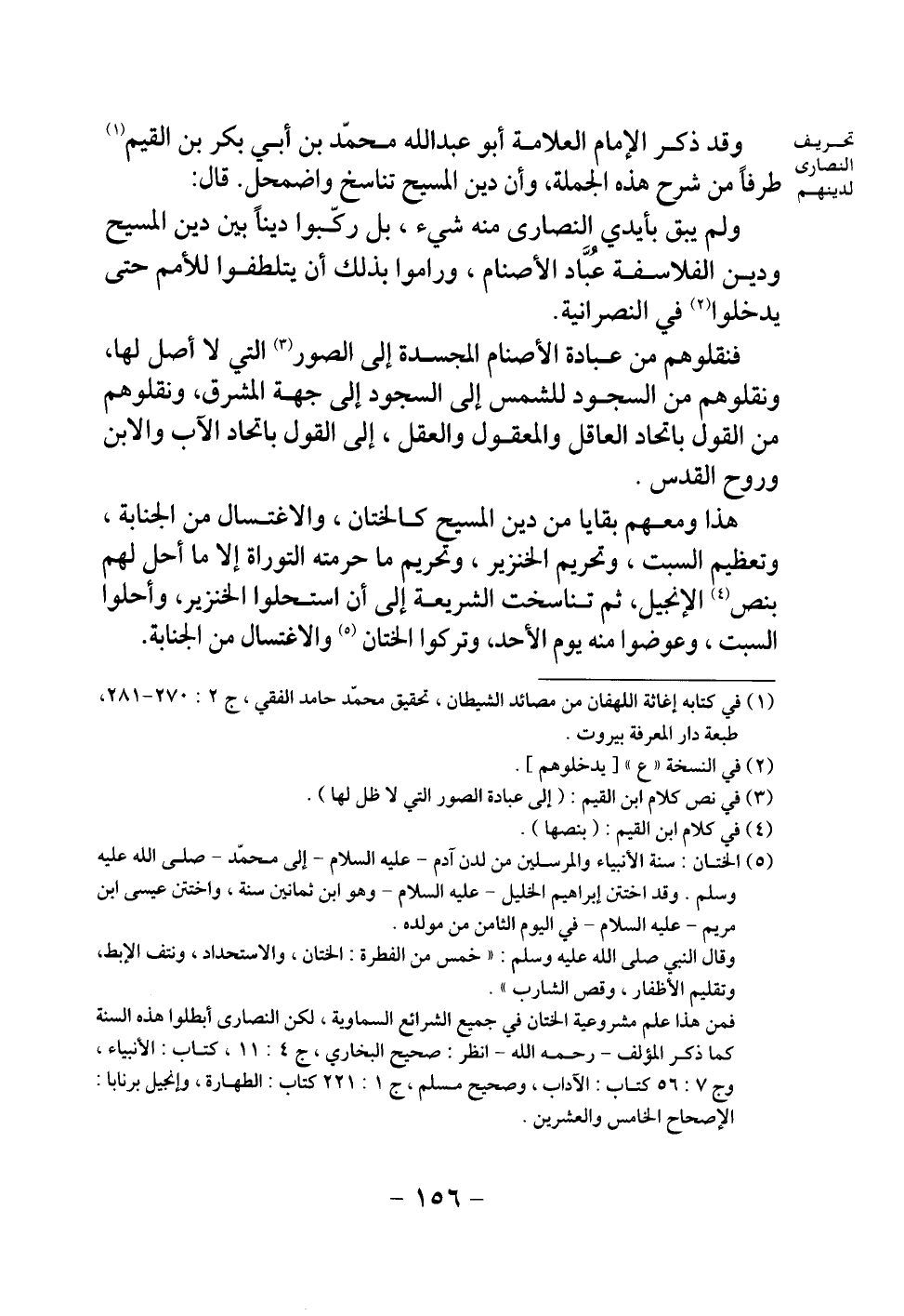 وقد ذكر الإمام العلامة أبو عبد الله محمد بن أبي بكر بن القيم طرفا من شرح هذه الجملة، وأن دين المسيح تناسخ واضمحل. قال: