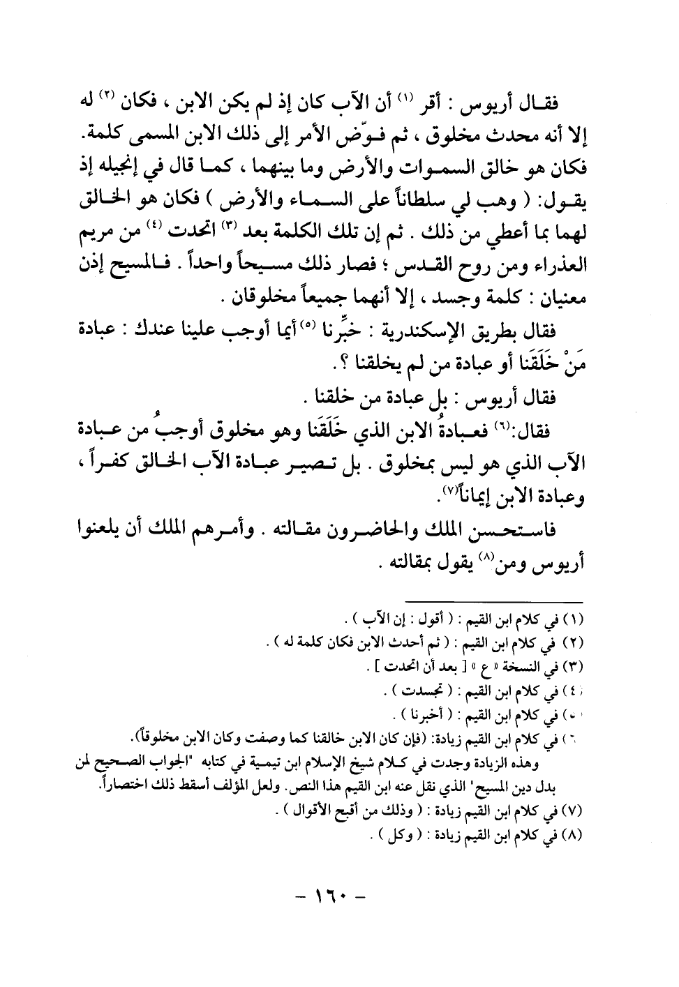 فقال: فعبادة الابن الذي خلقنا وهو مخلوق أوجب من عبادة الآب الذي هو ليس بمخلوق، بل تصير عبادة الآب الخالق كفرا، وعبادة الابن إيمانا.
