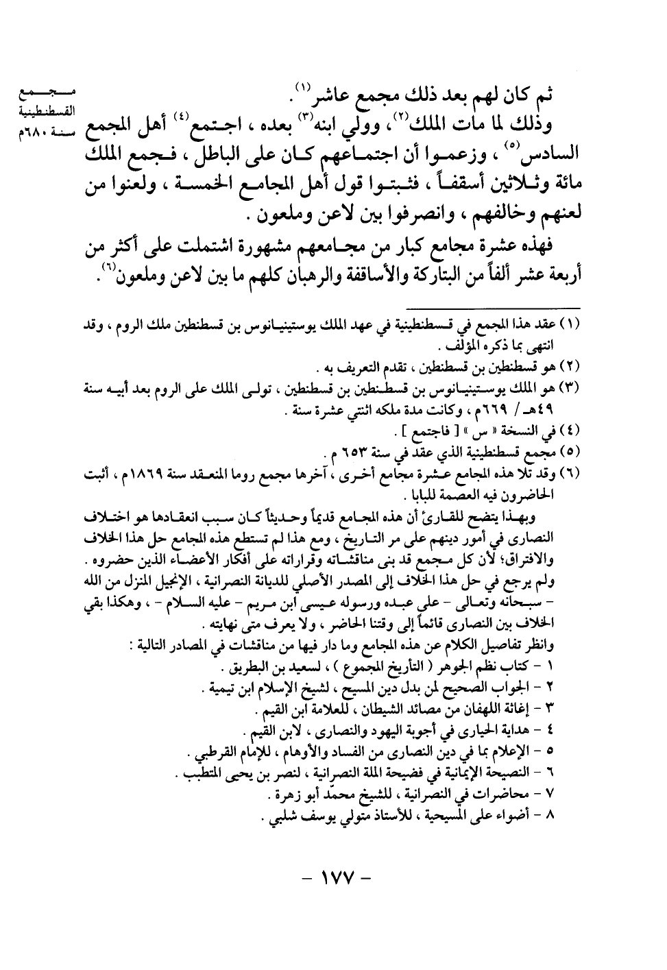 فهذه عشرة مجامع كبار من مجامعهم مشهورة، اشتملت على أكثر من أربعة عشر ألفا من البتاركة والأساقفة والرهبان كلهم ما بين لاعن وملعون.