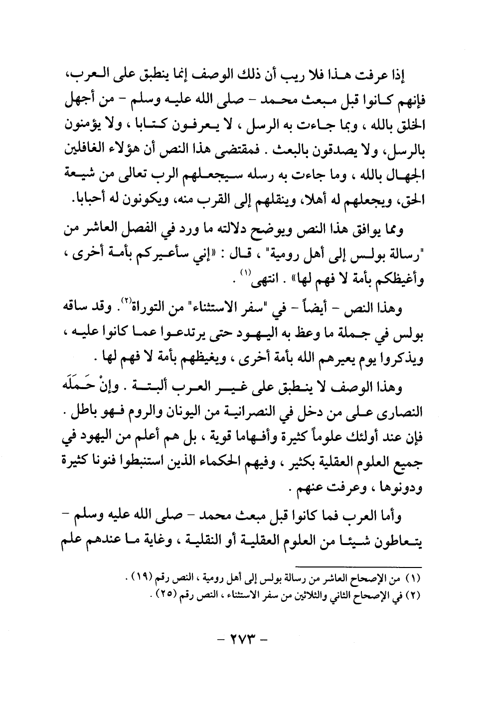 ومما يوافق هذا النص ويوضح دلالته ما ورد في الفصل العاشر من " رسالة بولس إلى أهل رومية "، قال: " إني سأعيركم بأمة أخرى، وأغيظكم بأمة لا فهم لها ". انتهى.