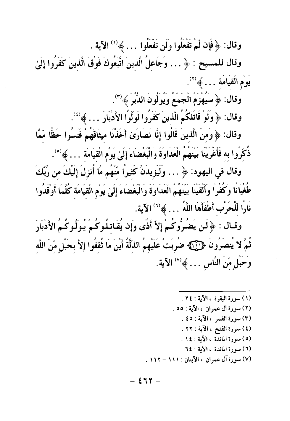 وقال: {لَنْ يَضُرُّوكُمْ إِلَّا أَذًى وَإِنْ يُقَاتِلُوكُمْ يُوَلُّوكُمُ الْأَدْبَارَ ثُمَّ لَا يُنْصَرُونَ ضُرِبَتْ عَلَيْهِمُ الذِّلَّةُ أَيْنَ مَا ثُقِفُوا إِلَّا بِحَبْلٍ مِنَ اللَّهِ وَحَبْلٍ مِنَ النَّاسِ} ... الآية.