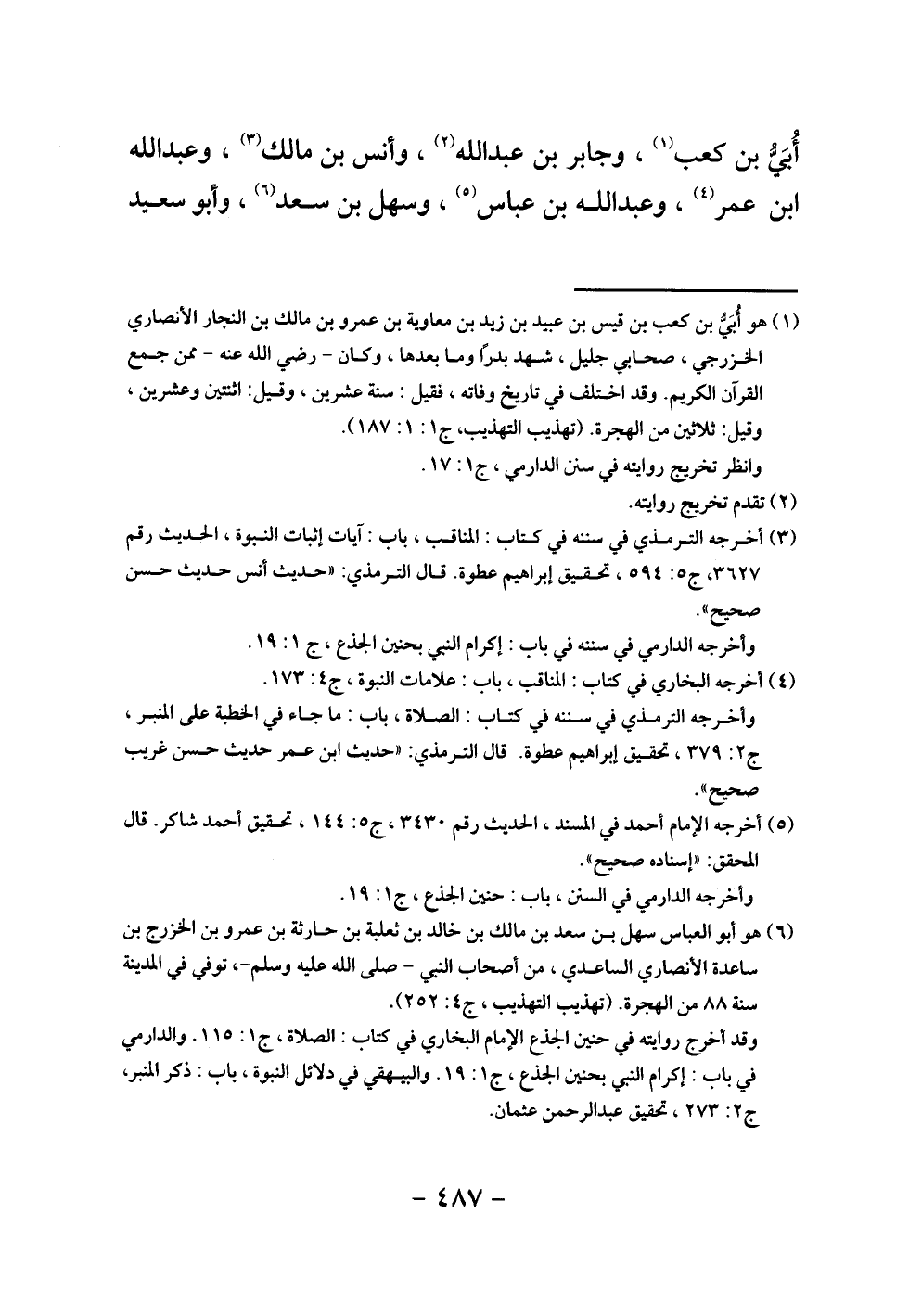 أبي بن كعب، وجابر بن عبد الله، وأنس بن مالك، وعبد الله بن عمر، وعبد الله بن عباس، وسهل بن سعد، وأبو سعيد