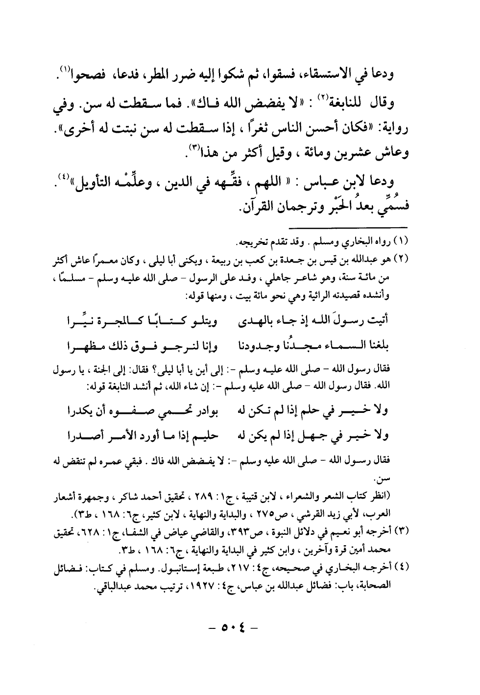 ودعا لابن عباس: " «اللهم فقهه في الدين، وعلمه التأويل» ". فسمي بعد الحبر وترجمان القرآن.