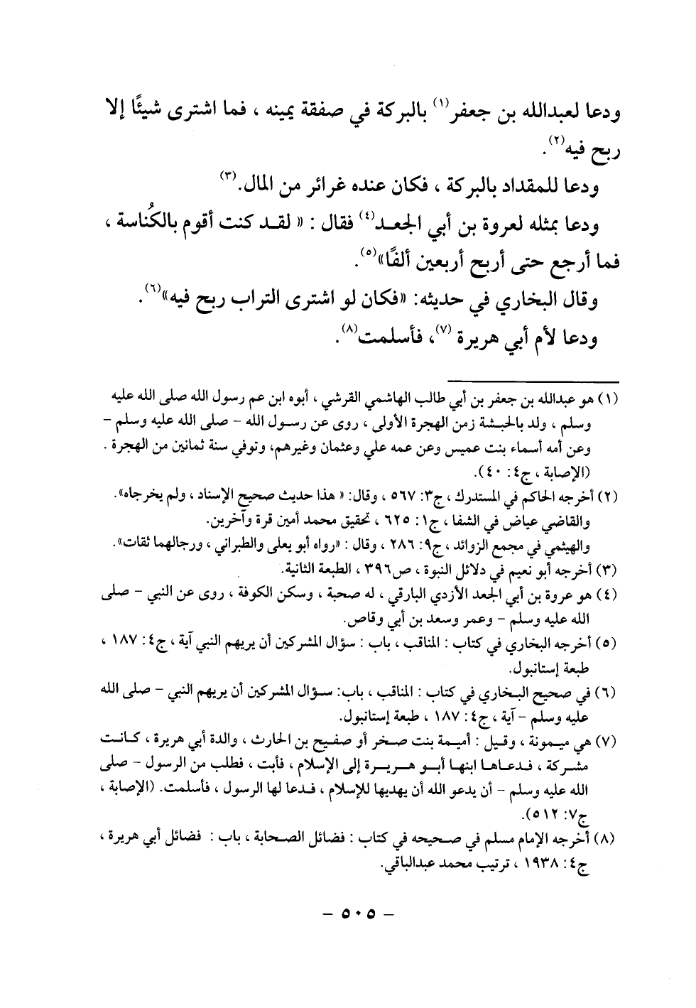 ودعا لعبد الله بن جعفر بالبركة في صفقة يمينه، فما اشترى شيئا إلا ربح فيه.