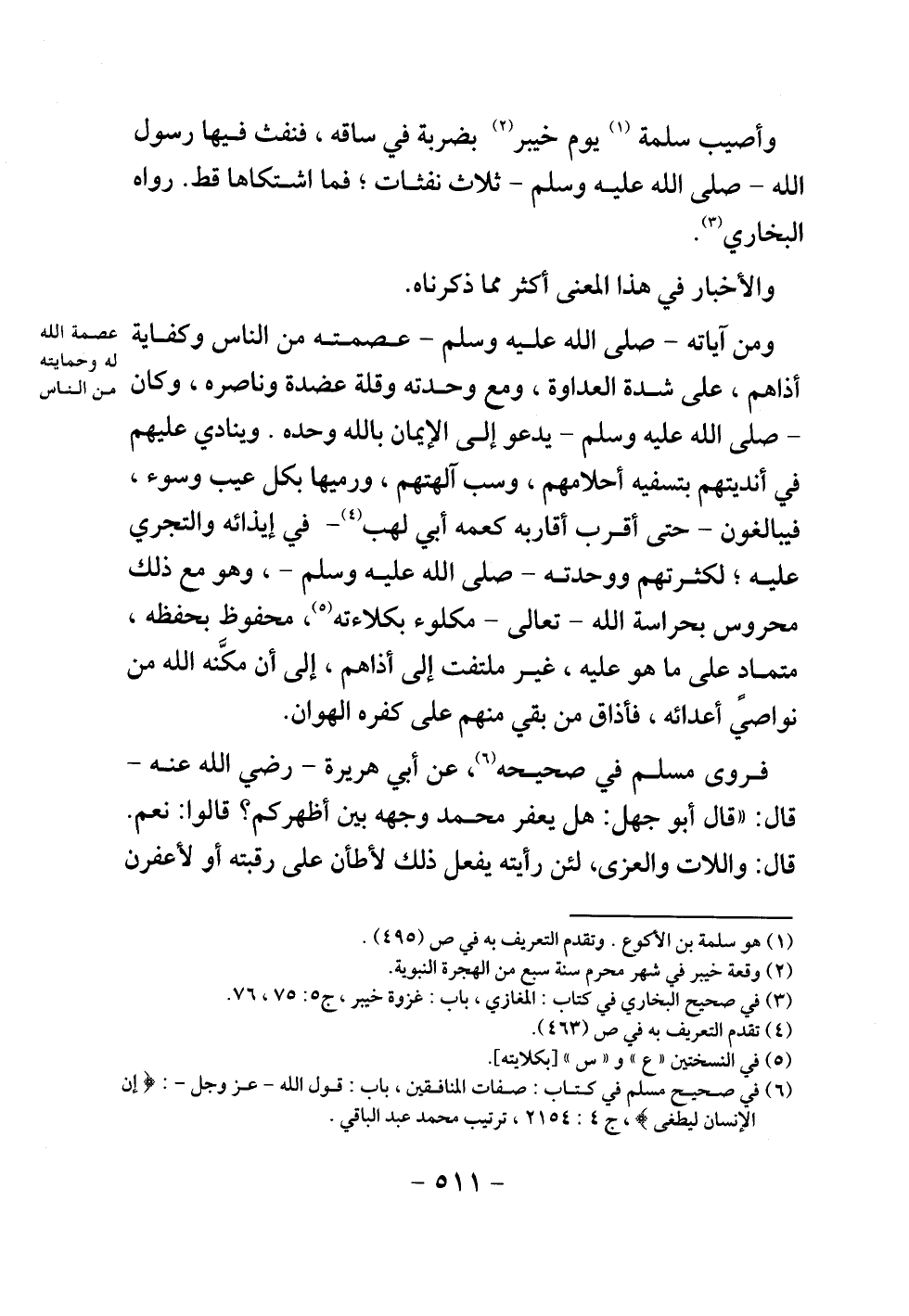 وأصيب سلمة يوم خيبر بضربة في ساقه، فنفث فيها رسول الله - صلى الله عليه وسلم - ثلاث نفثات، فما اشتكاها قط. رواه البخارى.