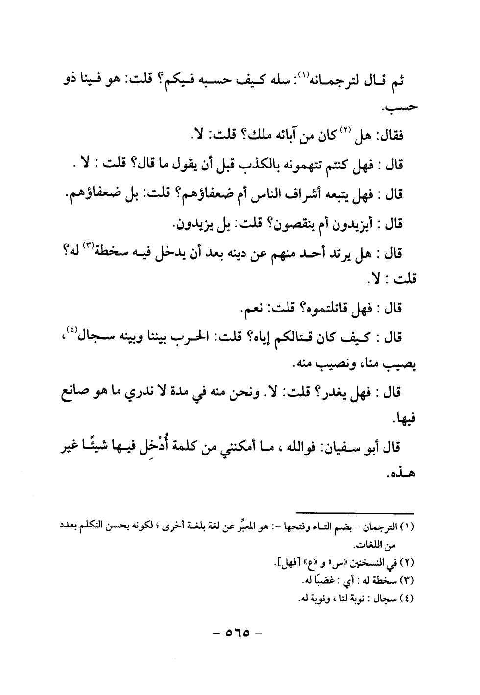 قال أبو سفيان: فوالله ما أمكنني من كلمة أدخل فيها شيئا غير هذه.