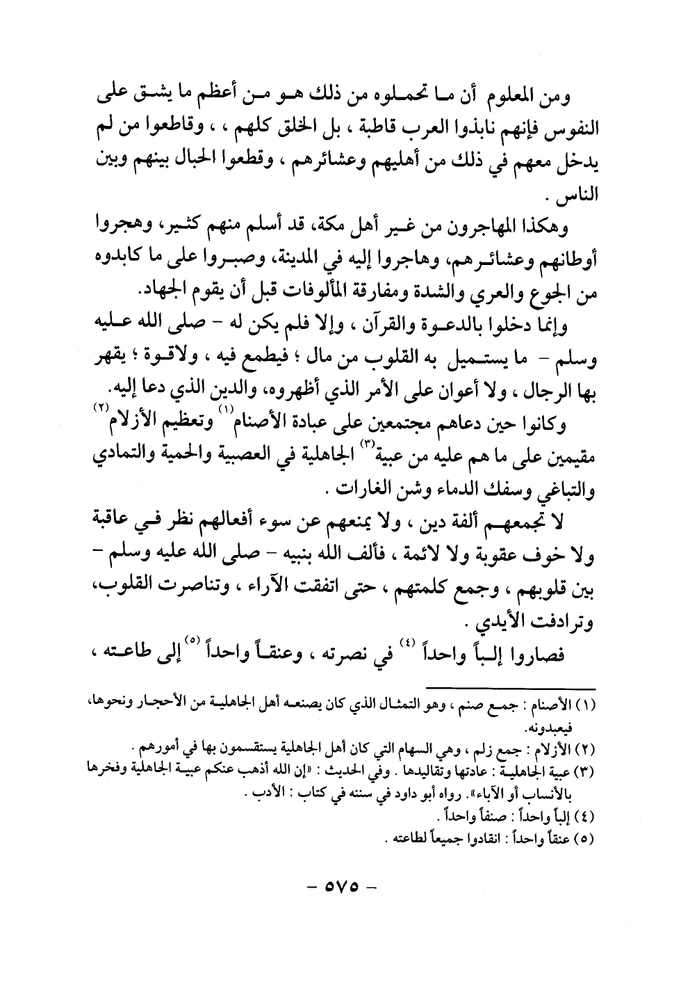 وكانوا حين دعاهم مجتمعين على عبادة الأصنام وتعظيم الأزلام، مقيمين على ما هم عليه من عبية الجاهلية في العصبية والحمية والتمادي والتباغي وسفك الدماء وشن الغارات.