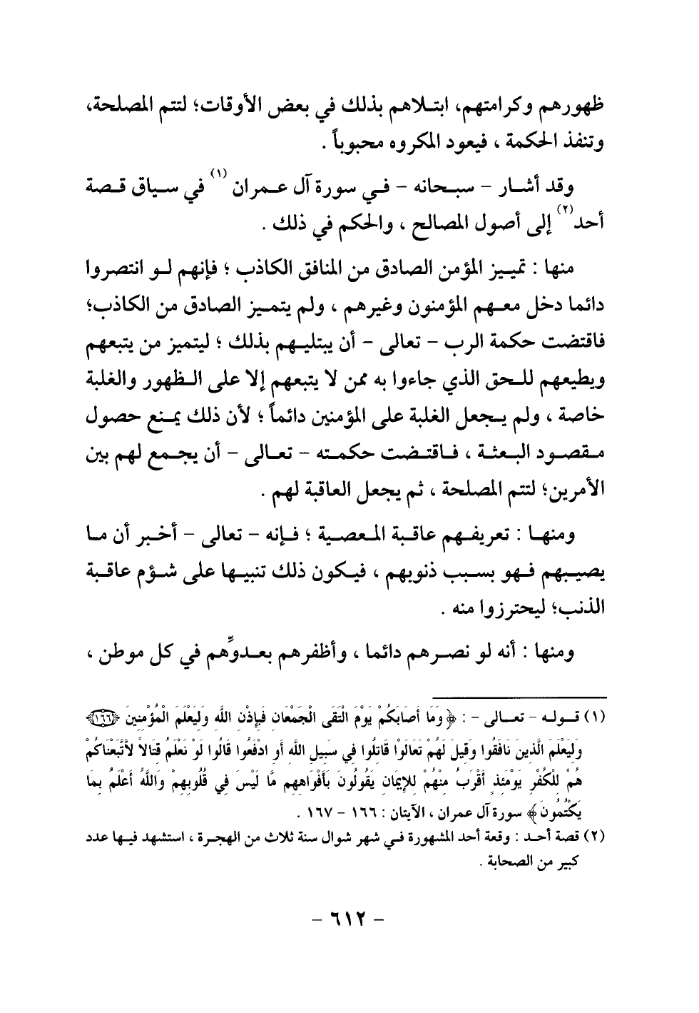 وقد أشار - سبحانه - في سورة آل عمران في سياق قصة أحد إلى أصول المصالح، والحكم في ذلك.