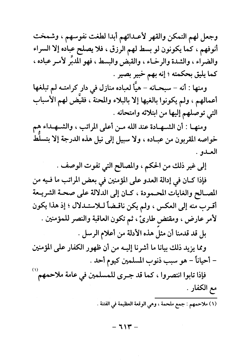 ومنها: أن الشهادة عند الله من أعلى المراتب، والشهداء هم خواصه المقربون من عباده، ولا سبيل إلى نيل هذه الدرجة إلا بتسلط العدو.